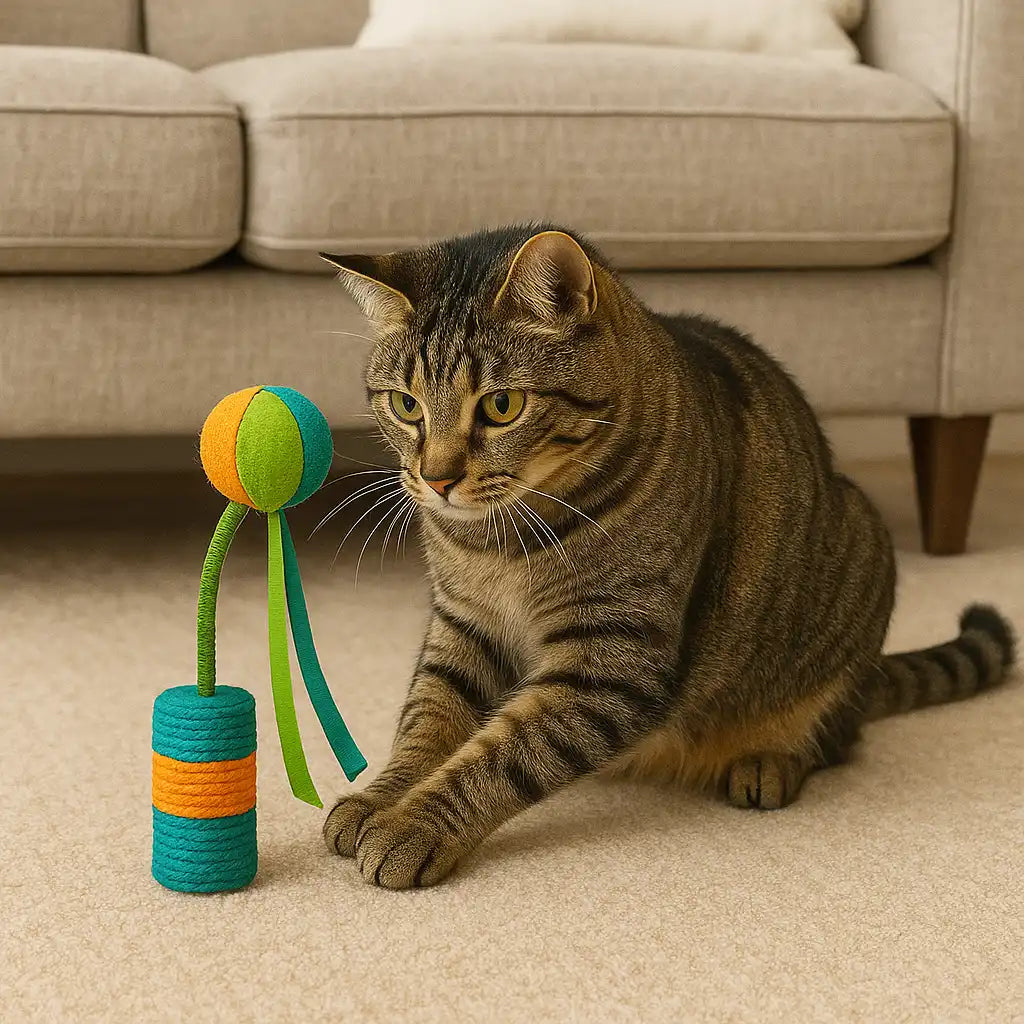 Keep your feline entertained and active, a vibrant and engaging cat toy designed to ignite your cat’s natural hunting instincts. Featuring a colorful ball, sturdy base, and playful ribbons, this toy encourages interactive play and mental stimulation. Perfect for solo or shared playtime,  brings endless fun and exercise to your cat’s daily routine. Crafted with safe, durable materials, it’s built to last and keep your furry friend happily engaged.